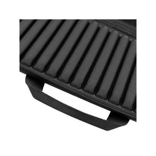 • Внутри дно оборудовано специальными накладками для защиты ноутбука, его рифленая форма обеспечивает хорошую вентиляцию и снижает нагрев устройства при работе в чехле.