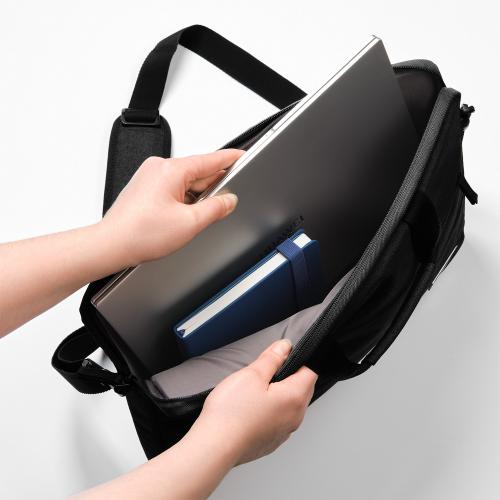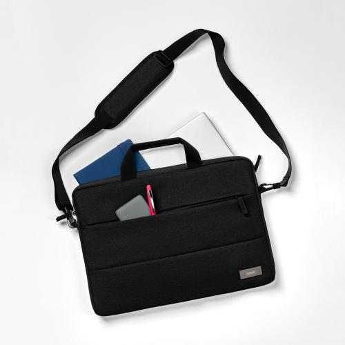 Основное отделение для ноутбука с диагональю до 15,6 дюймов оснащено мягкими вставками для защиты при транспортировке. В комплекте удобный регулируемый плечевой ремень. Крепкие ручки и съемный плечевой ремень обеспечивают комфорт при носке.