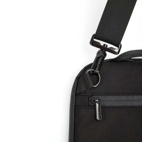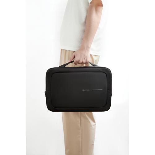 Сумка для ноутбука от XD Design станет надежным спутником, куда бы вы ни отправились. Это настоящее воплощение стиля и функциональности. Она изготовлена из переработанных пластиковых бутылок с водоотталкивающим покрытием, поэтому вашей технике не страшны ни дождь, ни снег. Внутри — мягкая подкладка из приятного на ощупь флиса, которая гарантирует безопасность ноутбуку. Несмотря на компактные размеры, в сумку поместятся зарядные устройства, мышь и необходимые в поездке вещи. На задней стороне есть дополнительный карман, а удобный плечевой ремень можно снять при необходимости. Сумка подходит для ноутбуков диагональю до 16’’. Сертифицировано AWARE™. Наличие индикаторных частиц AWARE™ подтверждает, что мы действительно используем переработанные материалы. 2% с продажи каждой вещи, отмеченной сертификатом AWARE™, мы перечисляем в поддержку всемирной организации Water.org.