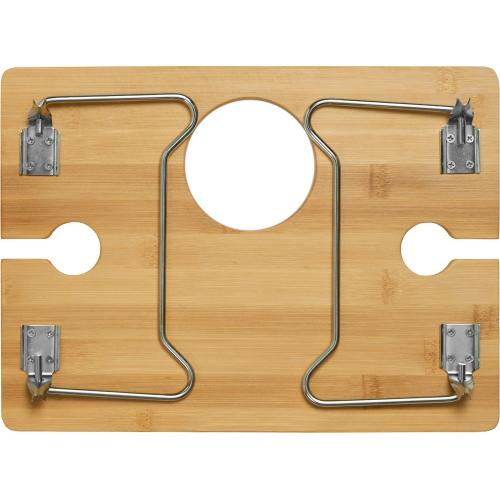 К сумке в наборе идет складной столик из натурального бамбука. Изготовленный из экологически чистого и долговечного бамбука, этот столик не только красив, но и практичен. Его легкие и прочные металлические ножки складываются одним движением, обеспечивая компактное хранение и удобную транспортировку. Возьмите его с собой на пикник, на пляж, на дачу или используйте как стильный приставной столик дома – он везде будет к месту!
