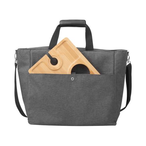 Большую вместительную сумку-холодильник удобно использоваться для транспортировки охлаждённых или подогретых продуктов и бутылок с разнообразными напитками. Внутри по бокам сумки расположены 2 изотермических кармана для высоких бутылок. Основное отделение на молнии. 2 ручки с фиксатором на липучке для удобства носить в руке. Большой наружный карман на кнопке. Съемная лямка на плечо регулируется по длине. Выгодный бонус - штопор с бамбуковой ручкой в комплекте.