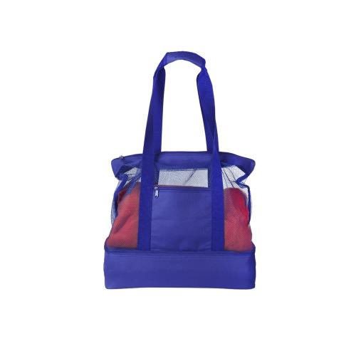 Вместительная пляжная сумка с отделением -холодильником внизу. Удобно брать холодные напитки на пляж. Сетчатая ткань способствует просыханию пляжных вещей. Комфортные длинные ручки фиксируются вместе застежкой липучкой. Все отделения и наружный карман для мелочей застегиваются на молнию. Благодаря большой вместительности сумку можно использовать для шоппинга.