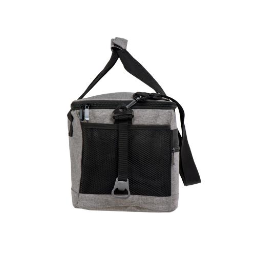 Вместительная сумка-холодильник со специальной конструкцией дна, предотвращающей протекание наружу жидкости от размораживания. Поверхность сумки всегда остается сухой. Основное отделение и карман спереди на молнии. Сбоку 2 сетчатых кармана. Съемный плечевой ремень регулируется по длине. Короткие ручки фиксируются вместе застежкой-липучкой. В комплекте открывалка для бутылок.