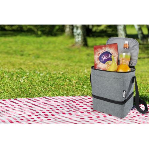 Сумка-холодильник Tundra выполнена из переработанного материала, в ней достаточно места для всех ваших продуктов, которые вы берете на обед. Имеет одно верхнее изолированное отделение на молнии и одно нижнее изолированное отделение на молнии. Нижнее отделение идеально подходит для бенто-бокса, а в переднем прорезном кармане удобно носить защитную маску и другие небольшие предметы. Подкладка и внешний слой сумки-холодильника PEVA изготовлены из переработанного РЕТ-пластика.