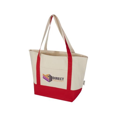 Sam эко- сумка из переработанного хлопка, сертифицированного согласно GRS, плотностью 320 г/м² - Красный / Натуральный, артикул 12074921