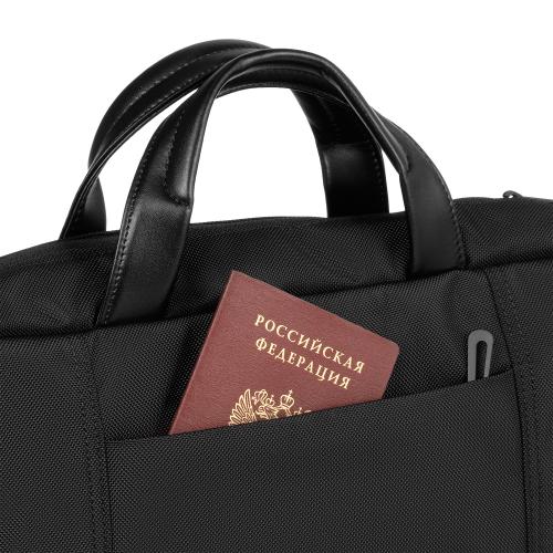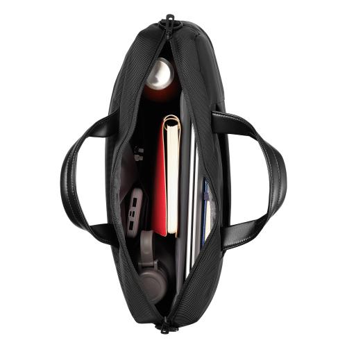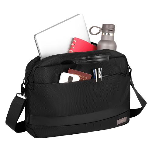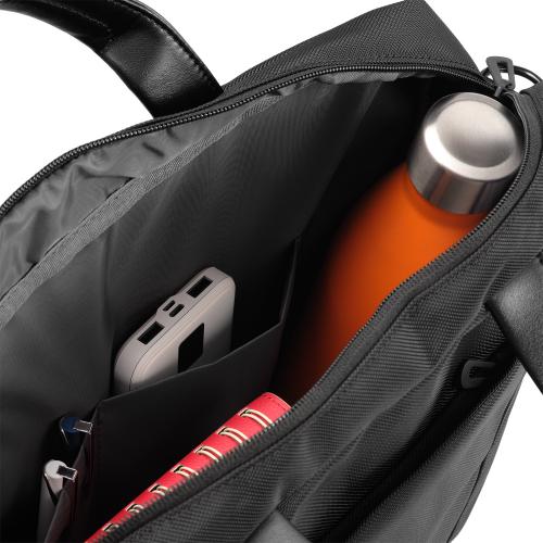 В сумку поместятся все необходимые для работы предметы: документы, пишущие принадлежности, аксессуары, мобильные гаджеты и ноутбук с диагональю до 15.6”