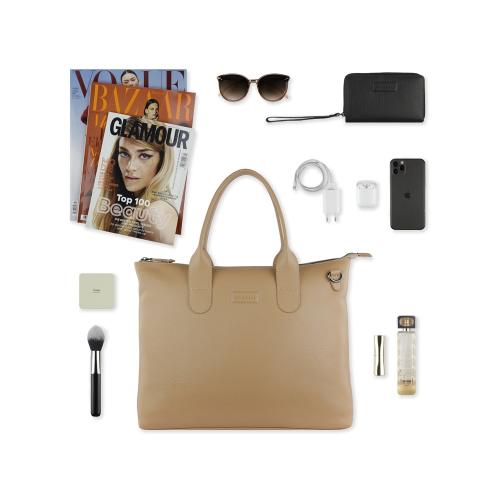 Сумка-шоппер BUGATTI ЭЛЬЗА | ELSA, песочного цвета, воловья кожа/полиэстер, 46х11х31,5 см, артикул 49460254
