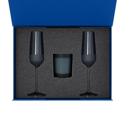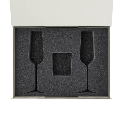 Идеальное решение для надежной и стильной упаковки двух бокалов для шампанского и свечи.