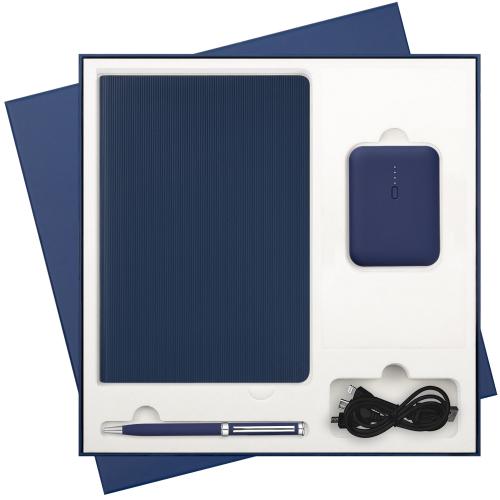 Подарочная коробка с ложементом для ежедневника, ручки и аккумулятора, синяя (под съемные ложементы), артикул 695704.030