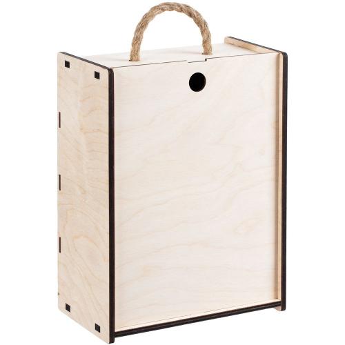 Деревянная подарочная коробка с крышкой Ларчик на бечевке