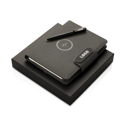 Подарочный набор металлическая ручка и блокнот А5 Twilight со светящимся логотипом и пауэрбэнком