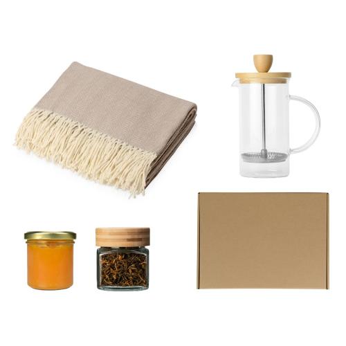 Подарочный набор с пледом, френчпрессом, чаем и вареньем