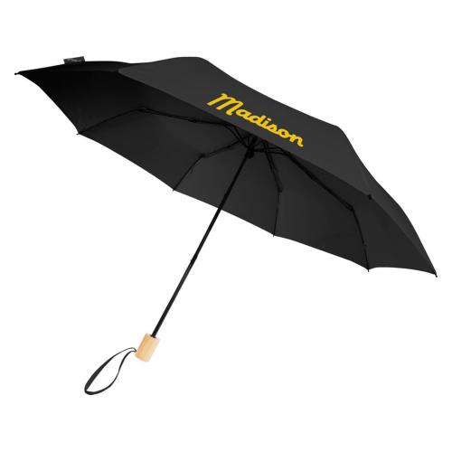 Ручной складной зонт с куполом из эпонж полиэстера и переработанного ПЭТ-пластика. Прочный металлический стержень, высококачественная рама со спицами из стекловолокна обеспечивают максимальную гибкость в ветреную погоду. Поставляется с чехлом и может легко поместиться в сумку или рюкзак для удобного ношения. Сочетание деревянной ручки и купола из эпонж полиэстера и переработанного ПЭТ-пластика обеспечивает надежность зонта. Доступен в различных модных цветах.