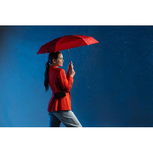 Миниатюрный зонт Color Action укроет от дождя или палящего солнца. Благодаря небольшим размерам и чехлу-кейсу на длинном ремешке его удобно брать с собой.