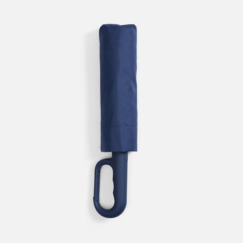 Преимущество обратного сложения заключается в том, что при закрытии внутренняя поверхность зонта остается снаружи, а мокрая сторона — запаковывается внутрь. За ручку-карабин удобно подвесить зонт на рюкзак или сумку.