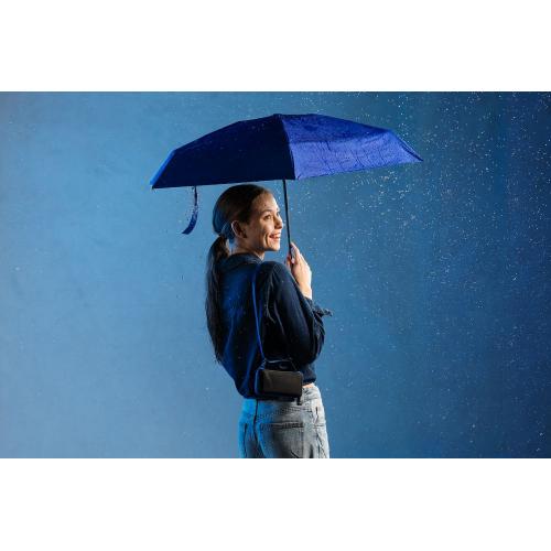 Миниатюрный зонт Color Action укроет от дождя или палящего солнца. Благодаря небольшим размерам и чехлу-кейсу на длинном ремешке его удобно брать с собой.