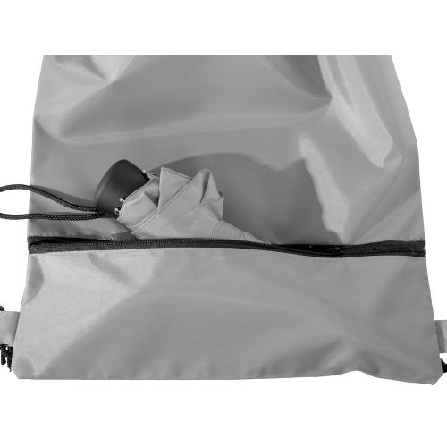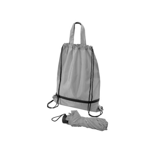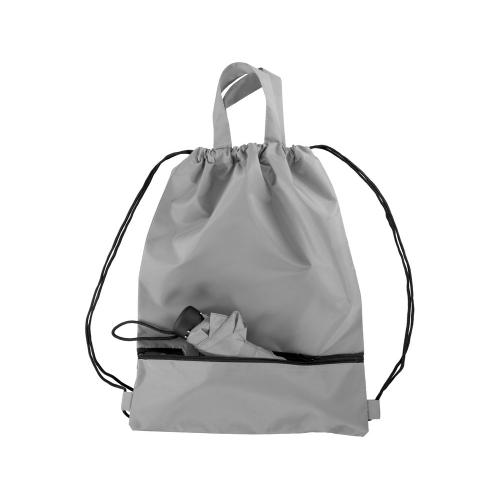 Механический зонт с прорезиненной ручкой идет в комплекте с сумочкой для покупок. На дне сумочки предусмотрен карман на молнии, в котором вы можете хранить зонт дома или прятать в него мокрый зонт, когда вы попали под дождь. Находясь в кармане сумочки, мокрый зонт не доставит неудобств. Сумочка имеет 2 варианта использования: шопер с двумя 2 ручками и рюкзак-мешок со шнурками.