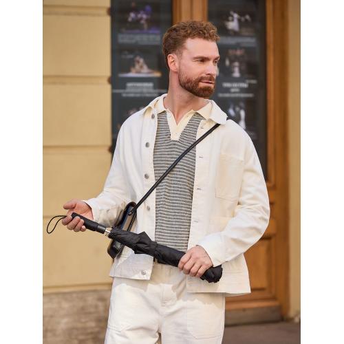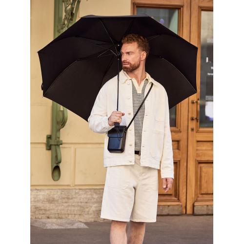 - Пластиковая матовая эргономичная ручка с эластичной петлей и кнопкой автоматического открывания зонта