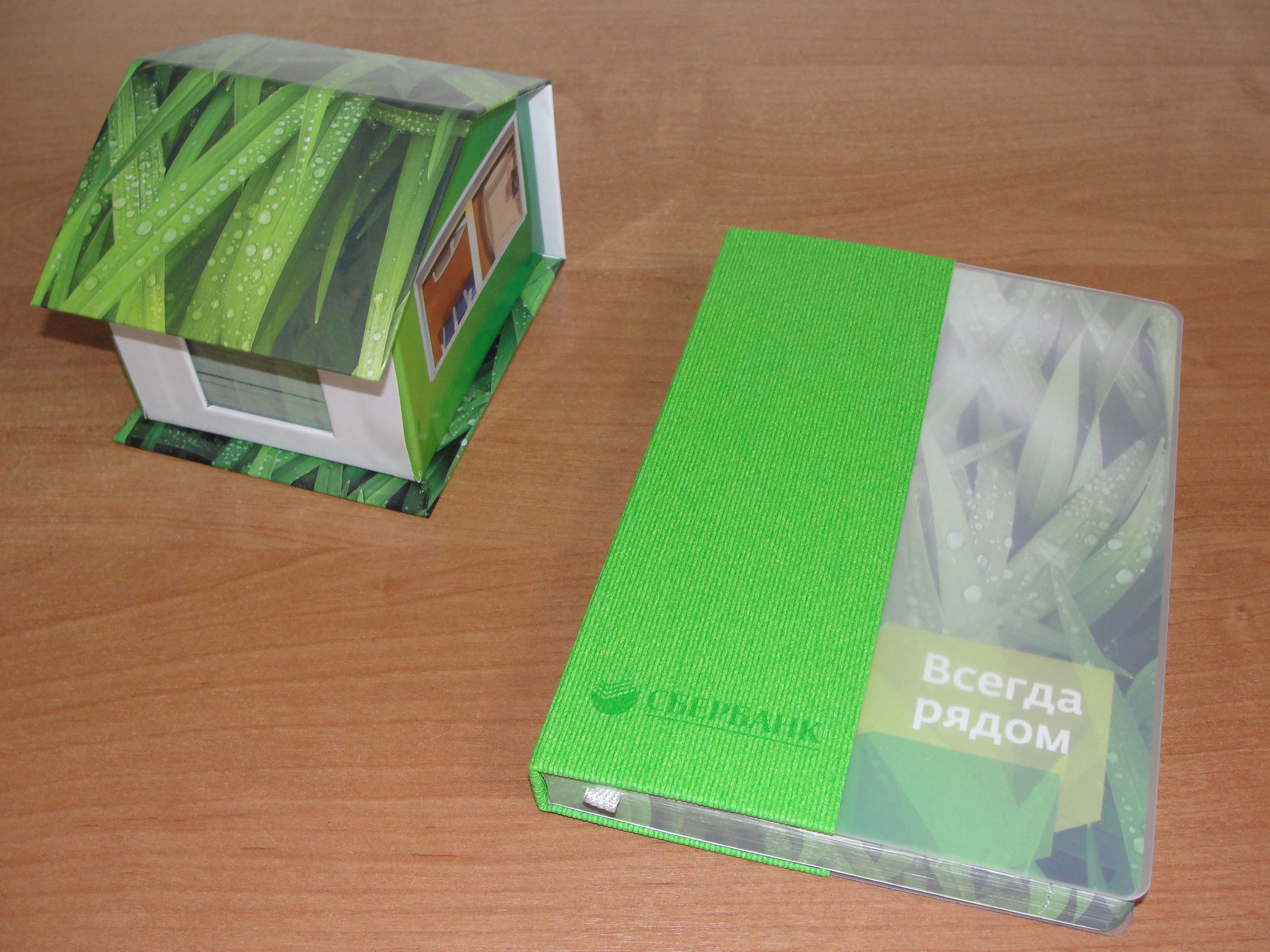 Корпоративный ежедневник и набор листочков для записей в виде «домика» для «Сбербанк».