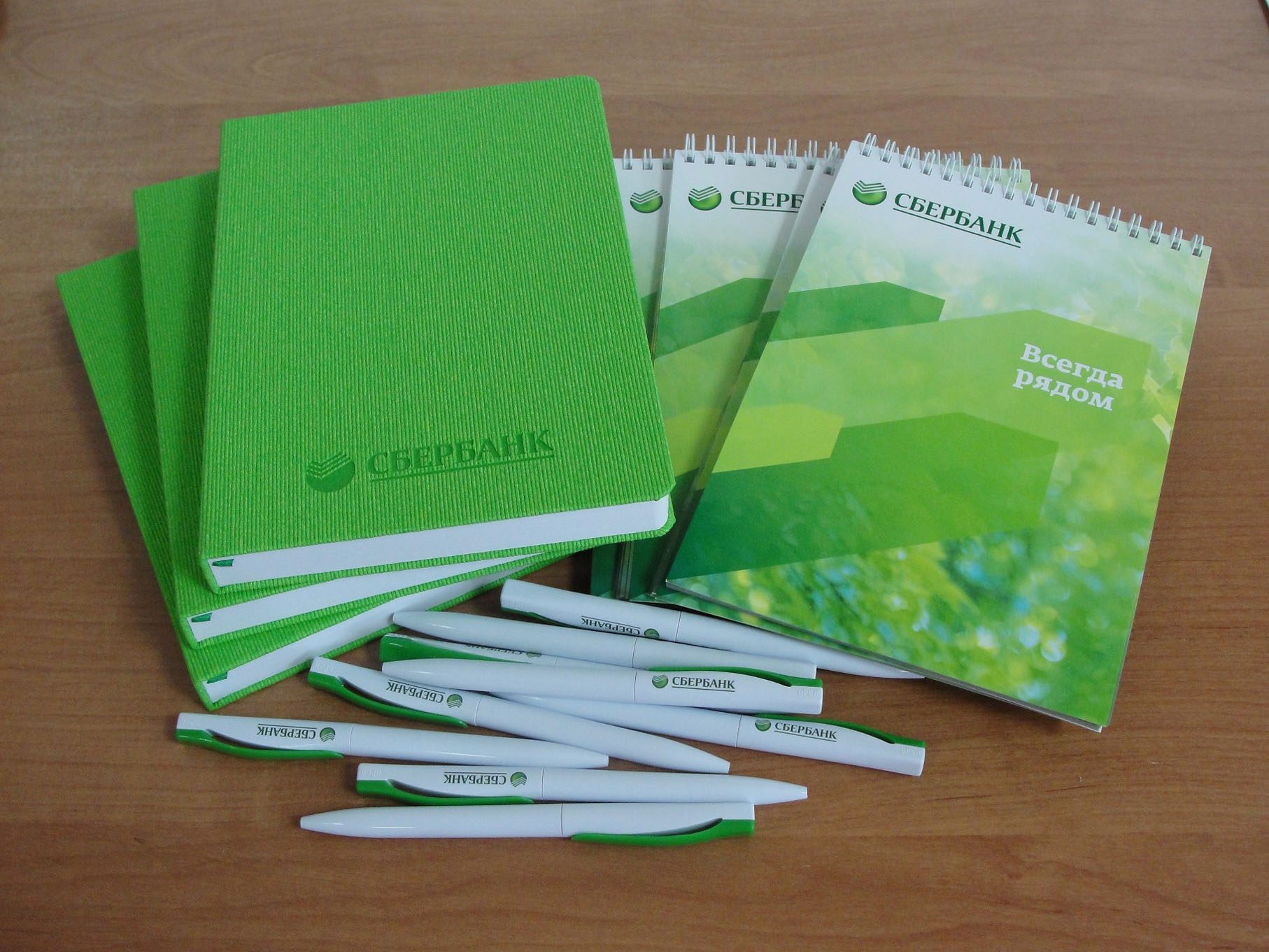 Блокноты, ежедневники, ручки для компании «Сбербанк».