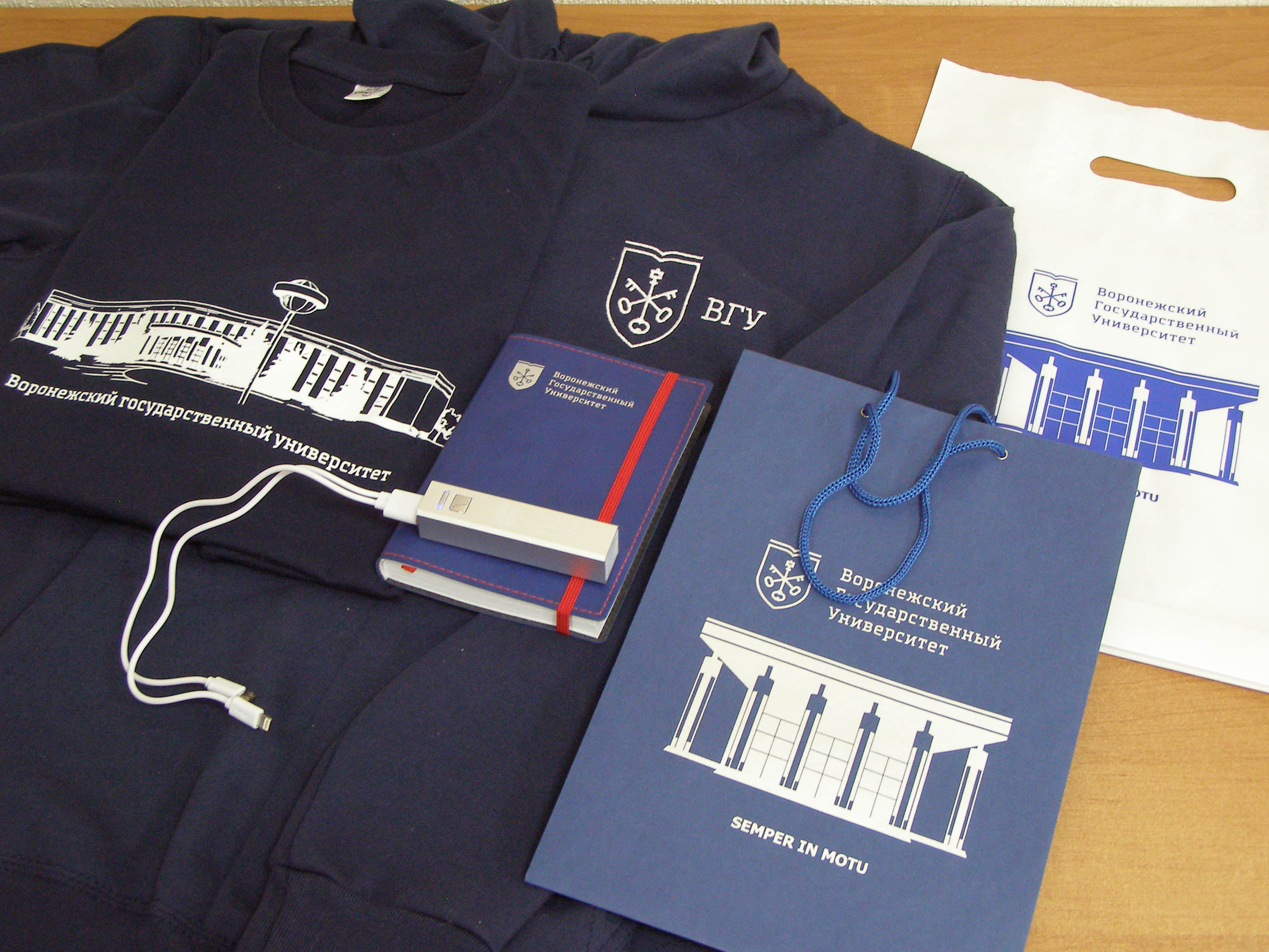 Корпоративный «ВГУ»: футболки, толстовки, аккумулятор, блокноты, пакеты бумажные и полиэтиленовые.