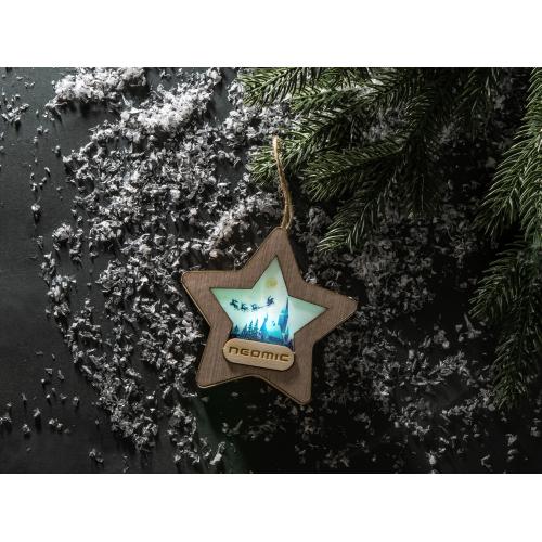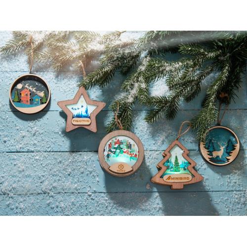 Новогодняя подвеска для елки станет прекрасным вариантом подарка: посмотрите, эти игрушки видно не только при свете дня, но и в темноте, ведь они могут светить сами! Игрушка с подсветкой выполнена из фанеры, фрагмент с изображением — напечатан на пропускающем свет материале. Подвеска сияет мягким разноцветным светом, подчеркивая пейзаж. Станет прекрасным вариантом для подарка, который будет радовать ваших адресатов долгие годы, каждую зиму красуясь на зеленых лапах елки.