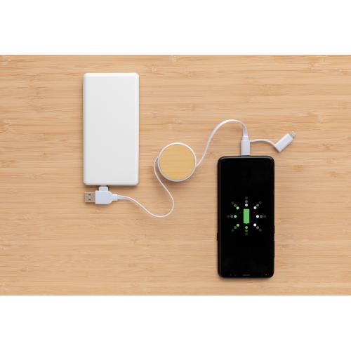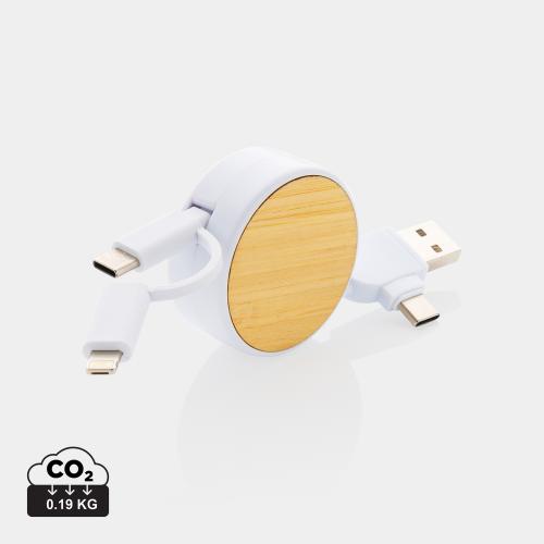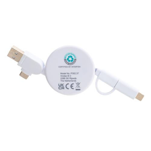 Компактный и удобный кабель с выдвижным механизмом выполнен из переработанного пластика. Оснащен 5 разъемами: вход USB C, вход USB A, выход Type-C, выход для устройств IOS и выход micro USB. Это позволяет использовать кабель для устройств с выходами Type-C, которыми оснащены многие современные смартфоны и ноутбуки Macbook. Кроме того, в кабеле есть разъем USB A, что делает его универсальным. Кабель сделан из бамбука FSC®, переработанного ABS-пластика и переработанного TPE (без ПВХ). Все вторичные материалы сертифицированы RCS, что гарантирует полный контроль всей цепочки поставок переработанного сырья. Изделие на 63% состоит из вторичных материалов (расчет от общего веса). Максимальная длина кабеля 100 см. Поставляется в крафт-упаковке FSC®mix.