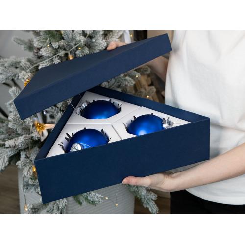 А еще Finery Trio — это маленькое произведение искусства, созданное с вниманием к деталям: шары диаметром 10  см бережно уложены в индивидуальные ложементы с изящным вырезом в форме снежинки, а стильная коробка придает подарку особую торжественность. Нестандартная треугольная форма упаковки подчеркивает оригинальность композиции и делает презент по‑настоящему запоминающимся.