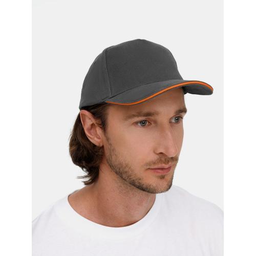 Бейсболка Long Beach, серая с оранжевым, артикул 6538.12