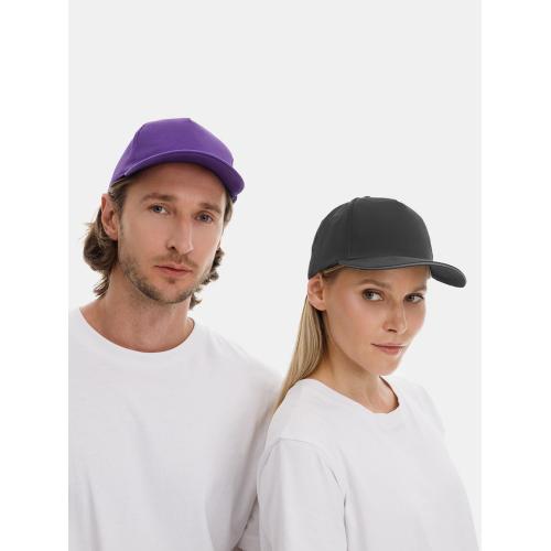 Модель бейсболки с 5-ю клиньями без лобового шва из плотного чесаного хлопка.