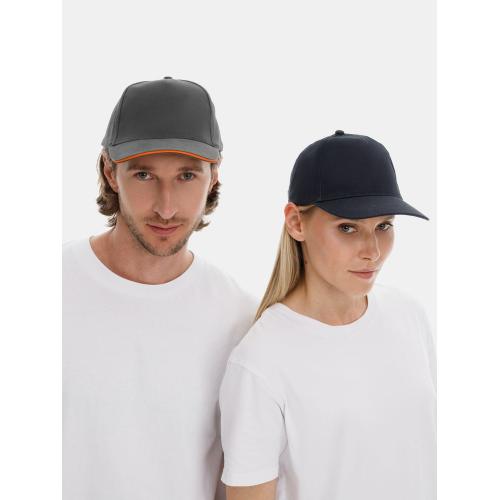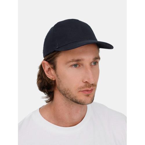 Модель бейсболки с 5-ю клиньями без лобового шва из плотного чесаного хлопка.