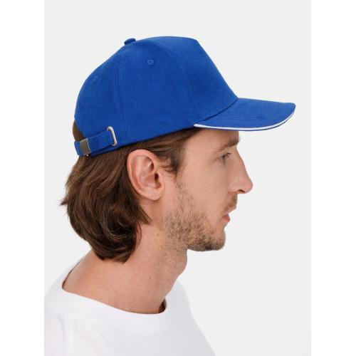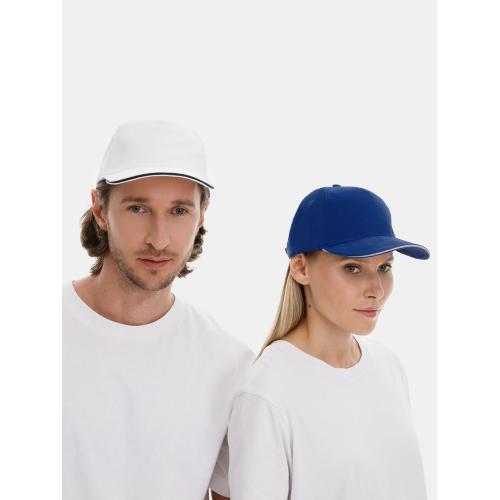 Модель бейсболки с 5-ю клиньями без лобового шва из плотного чесаного хлопка.