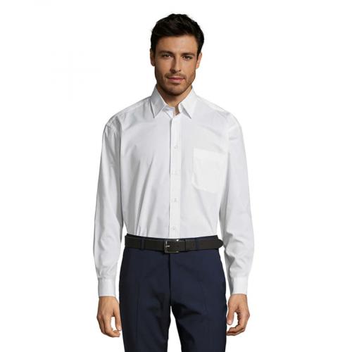 Мужская рубашка из смесового поплина с длинным рукавом.Смесовый поплин обеспечивает максимальный комфорт, лёгок в уход, не мнется.Стандартный крой (прямой).Длинный рукав.Жесткий воротник.Планка с 7 пуговицами в цвет изделия.Нагрудный карман слева.