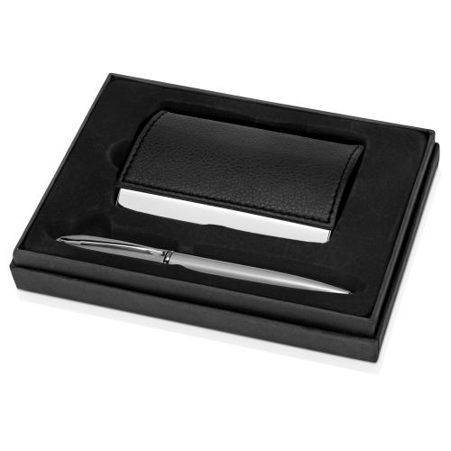 Набор из визитницы и ручки придется по вкусу деловому человеку, будь то клиент или сотрудник вашей компании. Визитница выполнена из качественного кожзама, а шариковая ручка имеет стильный пластиковый корпус – такой подарок будет оценен по достоинству!
