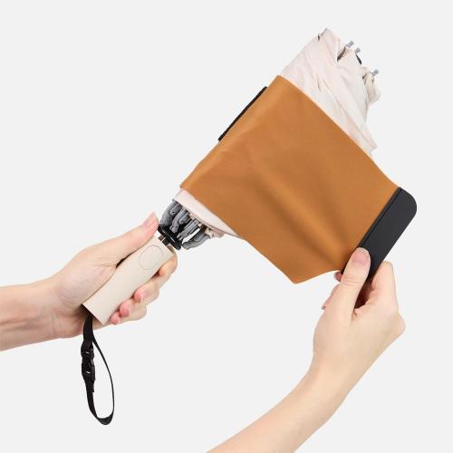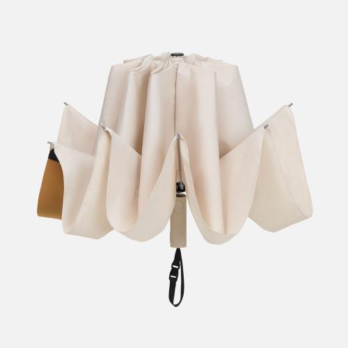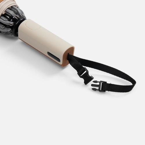 Складываясь после дождя, он прячет мокрую поверхность внутри, а сухая остается снаружи: в закрытом положении зонт не побеспокоит окружающих и не намочит одежду. Благодаря застежке на ремешке зонт удобно подвесить, например, на рюкзак.