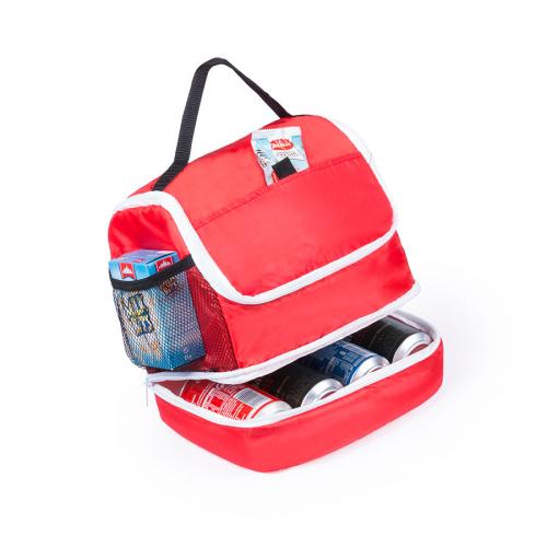 Универсальная сумка-холодильник из полиэстера 210D с двумя независимыми отделениями на молнии. С передним карманом на липучке и боковым карманом из эластичной сетки. Изотермический внутри в отделке PEVA. С практичной ручкой для переноски из прочного нейлона.