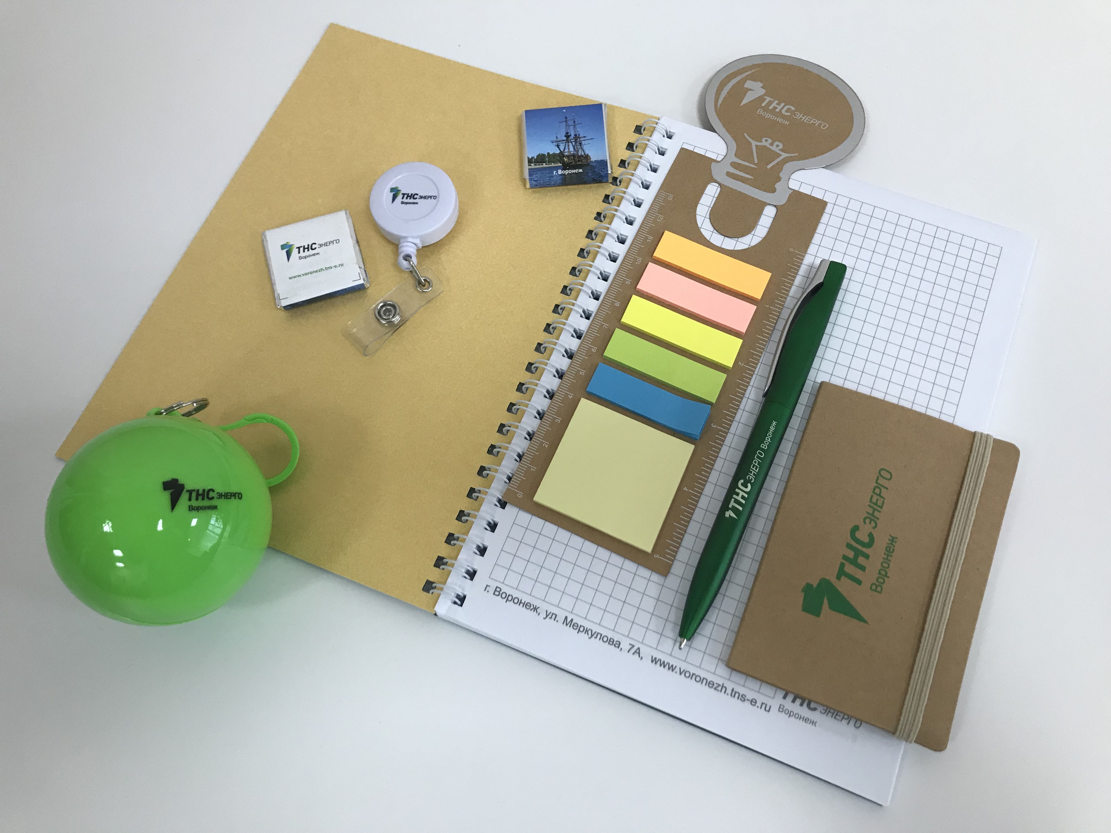 Раздатка для фестиваля «Вместе Ярче!» «ТНСэнерго»: крафт-закладка, ручки, блокноты, дождевик Шар.